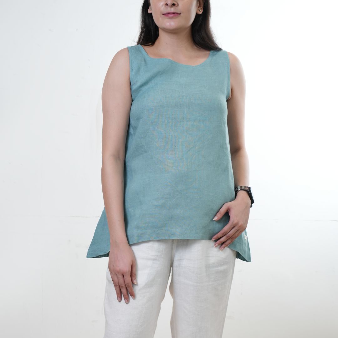 Asymmetrical Top - 100% Linen - Women - Muted Sage