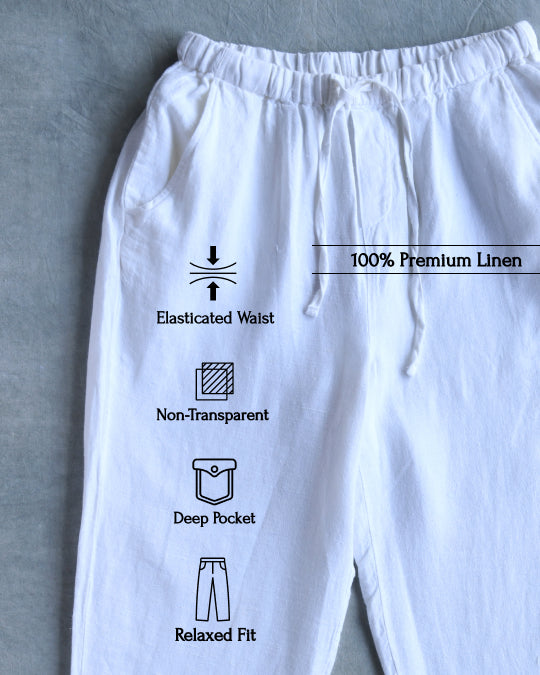Relaxed fit pants- 100% Premium Linen - Men - White