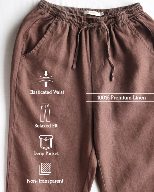 Relaxed fit Pants- 100% Premium Linen - Women - Brown