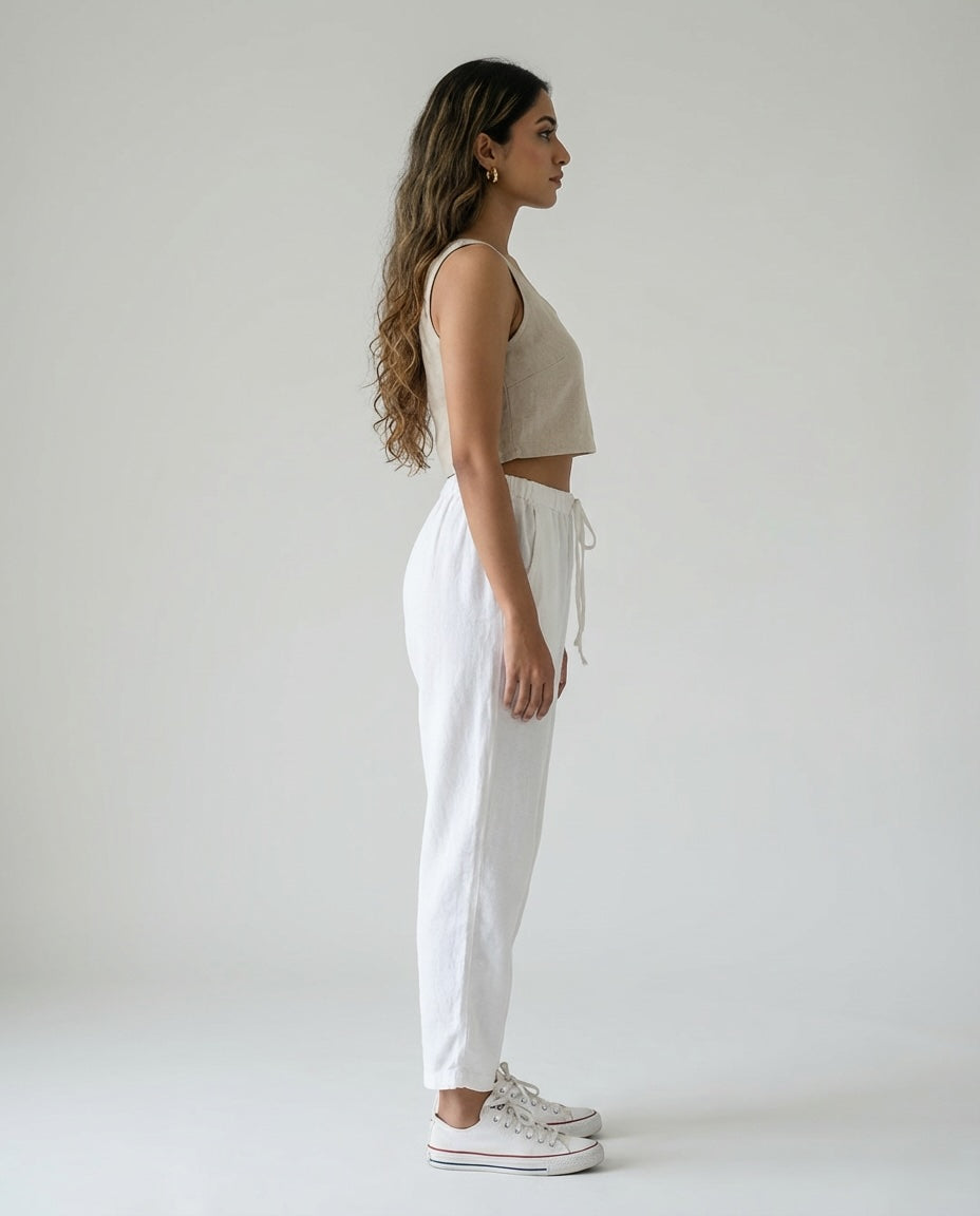 These 100% Pull on Linen pants are your go-to for effortless, everyday comfort—with all the thoughtful details that make a difference. Crafted from 100% linen at 25 Lea weave and 250 GSM weight, these Summer linen pants are light, breathable, and designed to flow with you throughout the day. Unlike typical linen, the fabric is non-transparent—even in lighter shades—so you can move freely, without layers or second thoughts.